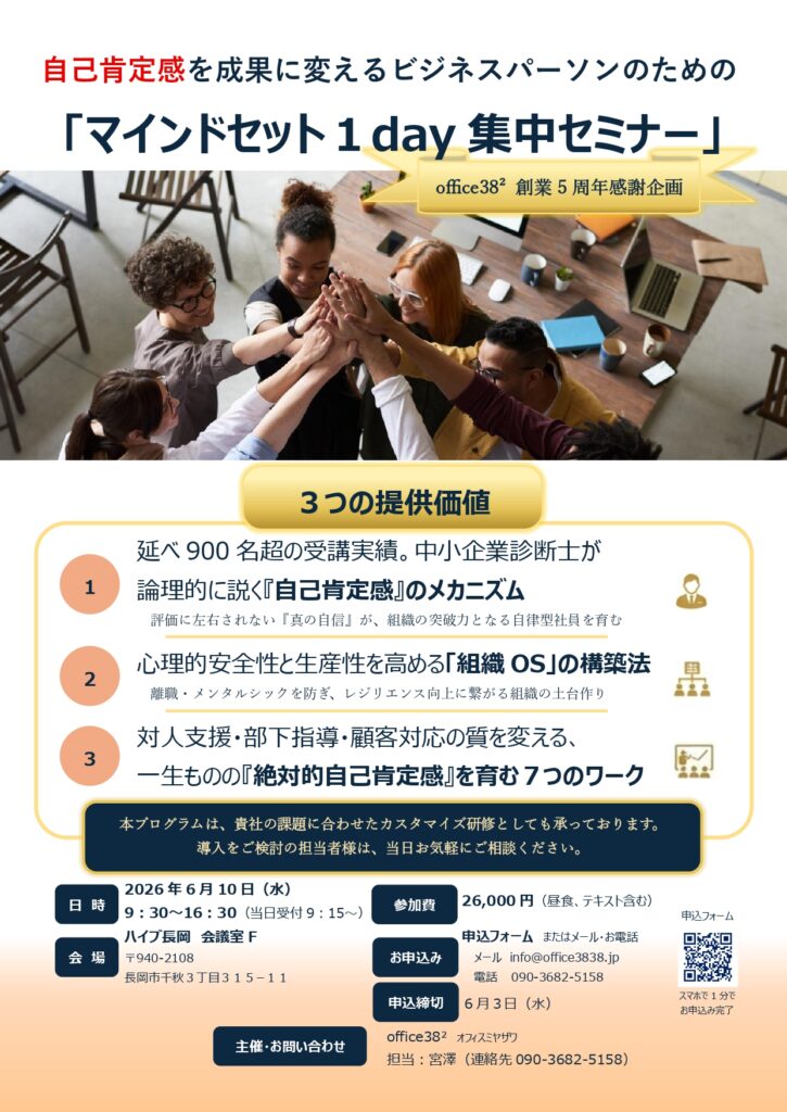 自己肯定感を成果に変えるビジネスパーソンのための「マインドセット1day集中セミナー」