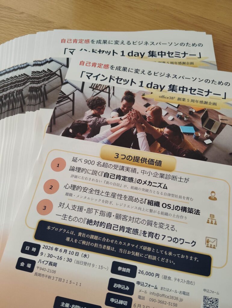 自己肯定感を成果に変えるビジネスパーソンのための『マインドセット1day集中セミナー』